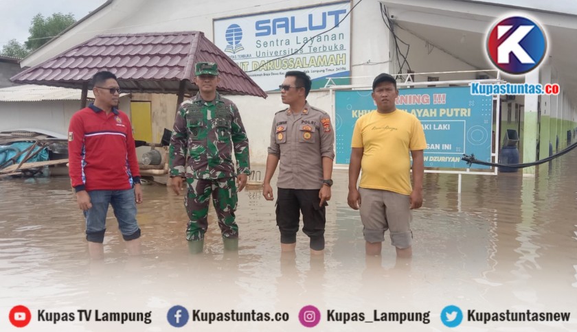 Untuk memastikan kondisi di lapangan, unsur Forum Koordinasi Pimpinan Kecamatan (Forkopimcam) Way Jepara turut meninjau lokasi banjir.