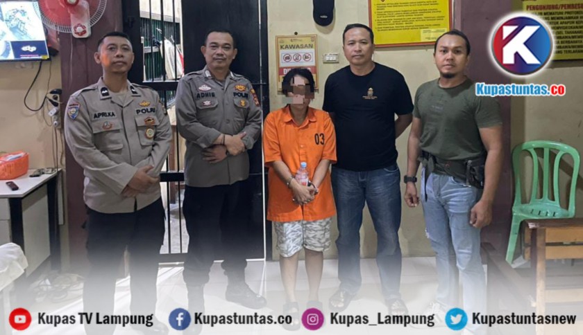 Tersangka saat diamankan di Mapolsek Pringsewu Kota. Foto: Ist.