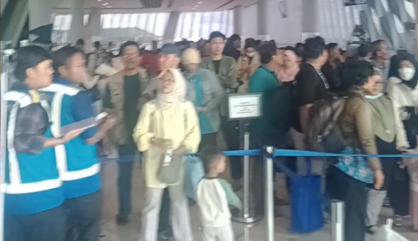 Selain antrean kendaraan, kepadatan penumpang juga terpantau di area Dermaga Eksekutif 1. Penumpang terlihat membludak di ruang tunggu dan akses menuju kapal.