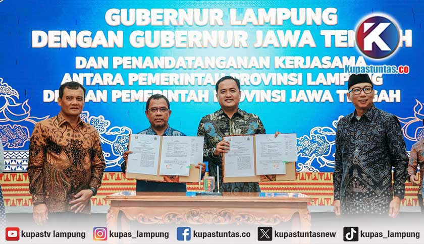Kupastuntas.co, Bandar Lampung - Pemerintah Provinsi Lampung dan Pemerintah Provinsi Jawa Tengah resmi mempererat kerja sama lintas sektor melalui penandatanganan sejumlah kesepakatan strategis yang digelar di Mahan Agung, Selasa (6/1/2026) malam.