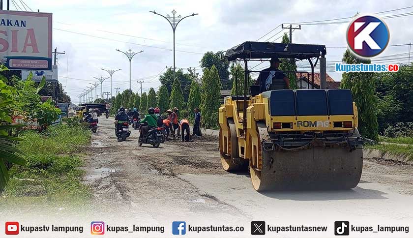 Ruas yang ditangani dimulai dari perbatasan Kota Metro dengan Kabupaten Lampung Tengah, tepat di sisi kiri jalan yang kondisinya paling parah.