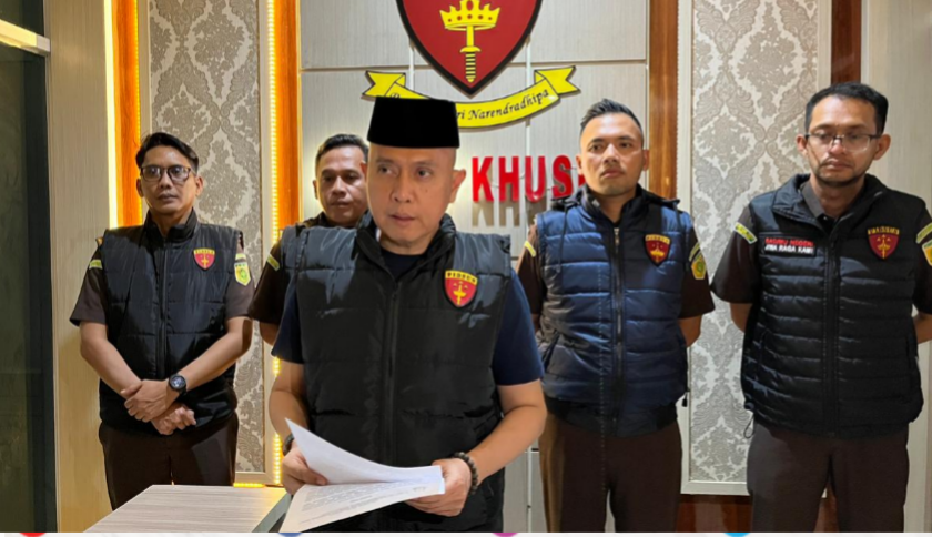 Asisten Pidana Khusus (Adpidsus) Kejati Lampung Armen Wijaya dalam konferensi pers dihadapan awak media. Foto: Yudi/Kupastuntas.co