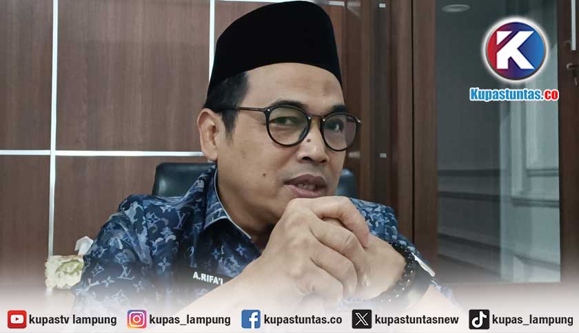Kepala Bidang Pendidikan Madrasah Kanwil Kementerian Agama Provinsi Lampung, Ahmad Rifai, saat ditemui di ruang kerjanya, Rabu (28/1/2026). Foto: Sri/Kupastuntas.co