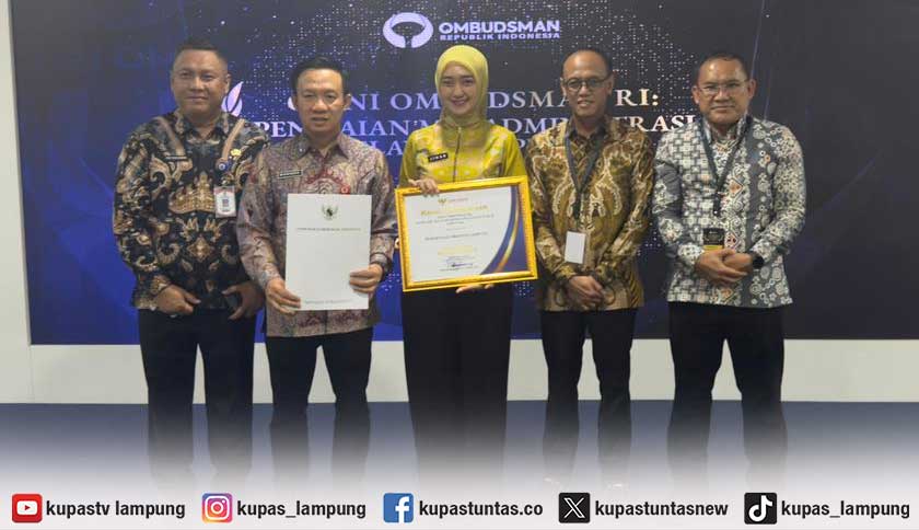 Kupastuntas, Bandar Lampung - Ombudsman RI memberikan memberikan penghargaan Kualitas Tertinggi Kategori Pemerintah Provinsi tahun 2025 kepada Pemerintah Provinsi (Pemprov) Lampung.