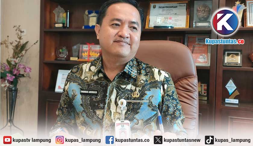 Kepala Disdikbud Provinsi Lampung Thomas Amirico saat dimintai keterangan, Jum'at (30/1/2026). Foto: Ria/Kupastuntas.co