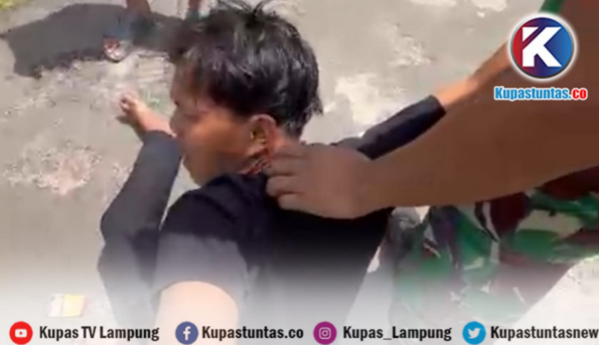 Prajurit TNI saat menangkap pelaku penjambretan di Lampung Tengah. Foto: Ist