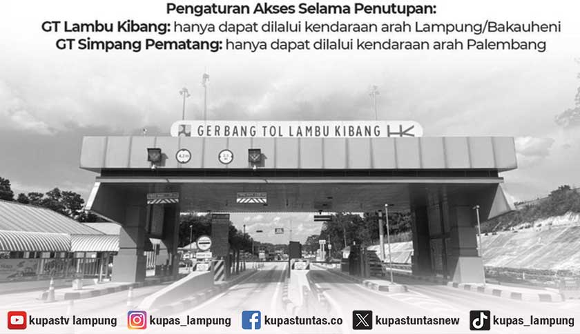 “Selama periode penutupan tersebut, Gerbang Tol Lambu Kibang hanya dibuka untuk melayani kendaraan yang menuju arah Lampung/Bakauheni,” kata Mardiansyah.