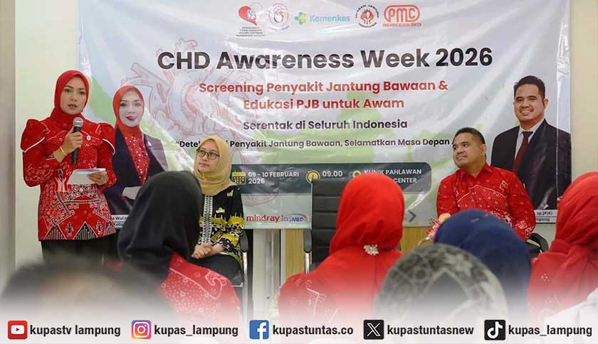 Ketua YJI Provinsi Lampung, Purnama Wulan Sari Mirza, dalam kegiatan Pekan Kesadaran Penyakit Jantung Bawaan 2026 yang digelar di Klinik Pahlawan Medical Center (PMC), Bandar Lampung, Senin (9/2/2026). Foto: Ist