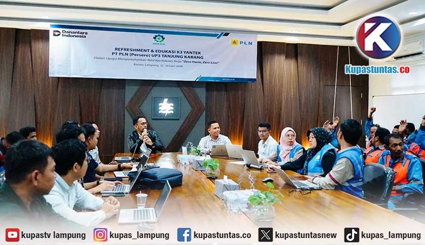 Kupastuntas.co, Bandar Lampung - Dalam rangka memperingati Bulan Keselamatan dan Kesehatan Kerja (K3) Nasional Tahun 2026, PT PLN (Persero) Unit Pelaksana Pelayanan Pelanggan (UP3) Tanjung Karang menggelar kegiatan Refreshment dan Edukasi K3 bagi petugas Pelayanan Teknik (Yantek) sebagai upaya memperkuat budaya keselamatan kerja dan mempertahankan capaian nihil kecelakaan kerja Zero Harm, Zero Loss.