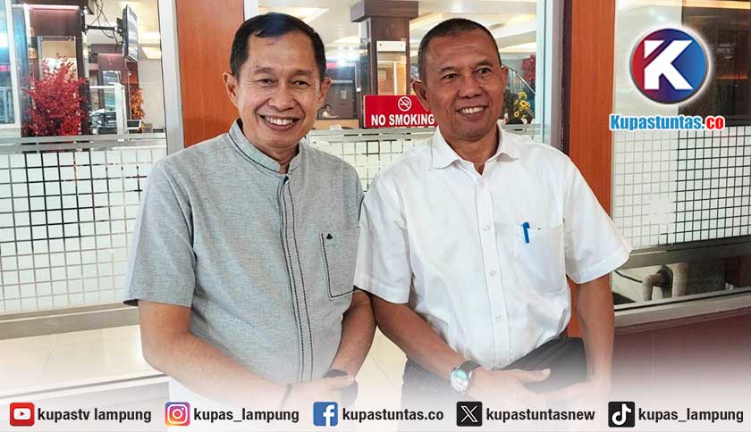 Wakil Ketua Hiswana Migas Lampung Bidang Elpiji, Dwi Prayono (kanan) saat dimintai keterangan, Jumat (13/2/2026). Foto: Ria/kupastuntas.co