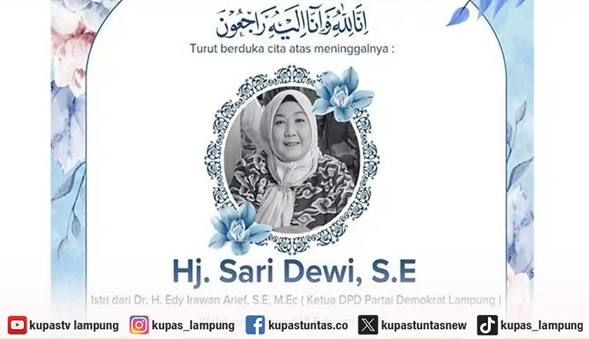 Kupastuntas.co, Bandar Lampung - Kabar duka menyelimuti keluarga besar Ketua DPD Partai Demokrat Provinsi Lampung. Istri Ketua DPD Partai Demokrat Lampung, Hj. Sari Dewi, dikabarkan tutup usia dan berpulang ke Rahmatullah, Rabu (18/2/2026) sekitar pukul 02.45 WIB.