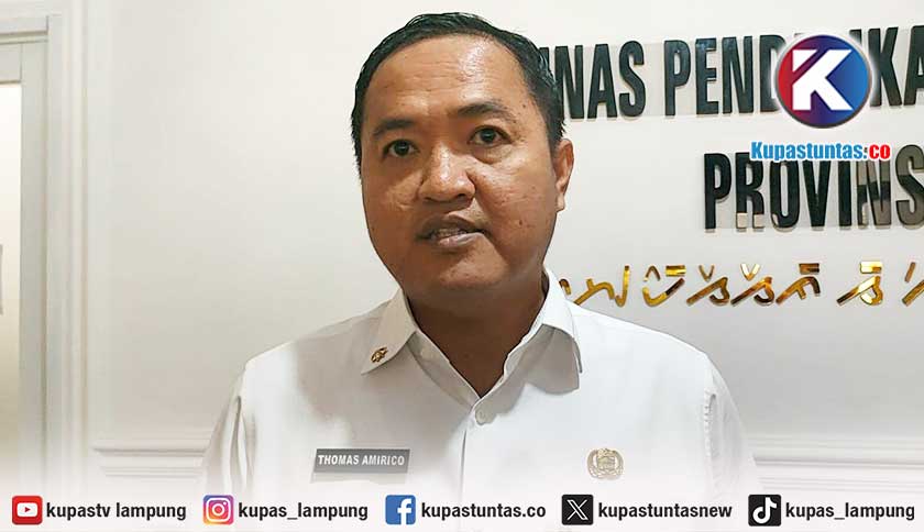 Kepala Disdikbud Provinsi Lampung Thomas Amirico saat dimintai keterangan, Rabu (18/2/2026). Foto: Ria/kupastuntas.co