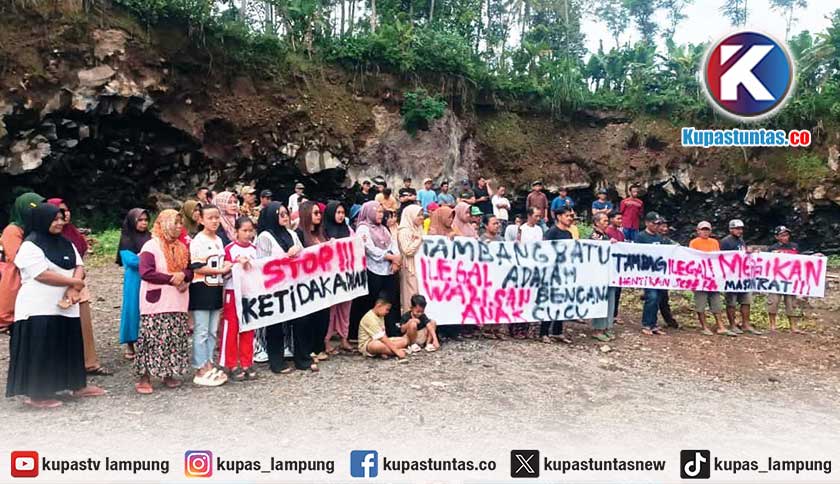 Kamis (19/2/2026), ratusan warga berdiri mengawal inspeksi mendadak Pemerintah Kabupaten Tanggamus dan aparat kepolisian ke lokasi tambang batuan yang diduga ilegal.