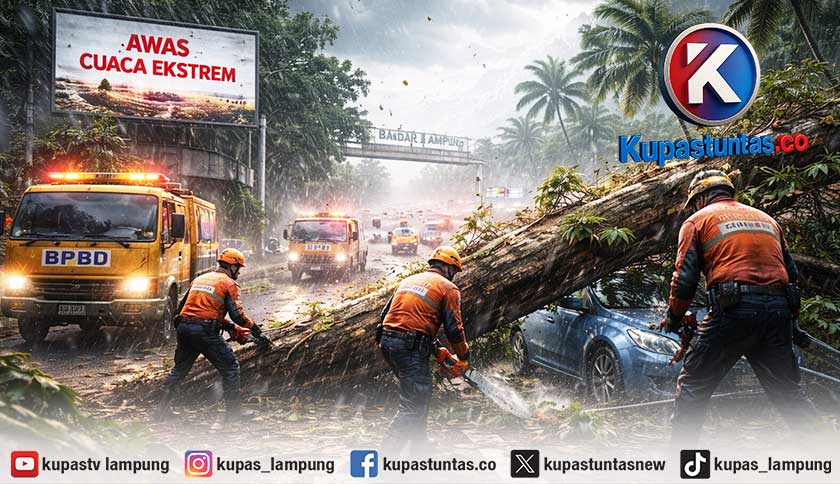 Kupastuntas.co, Bandar Lampung - Cuaca ekstrem yang melanda Kota Bandar Lampung sejak awal tahun 2026 berdampak pada meningkatnya kejadian pohon tumbang di sejumlah wilayah.