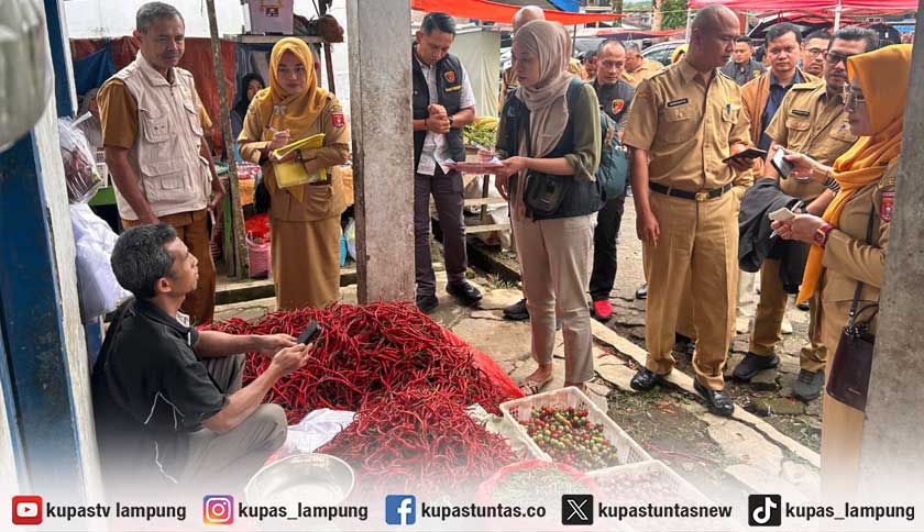 Pemerintah Kabupaten Lampung Barat bersama Satuan Tugas Sapu Bersih Pelanggaran Harga, Keamanan, dan Mutu Pangan melakukan inspeksi mendadak (sidak) di Pasar Liwa. Foto: Ist