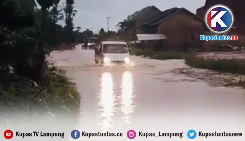 Kupastuntas.co, Lampung Barat - Ruas Jalan Pampangan–Srengit, Lampung Barat (Lambar) kembali tergenang banjir saat hujan deras mengguyur wilayah tersebut.