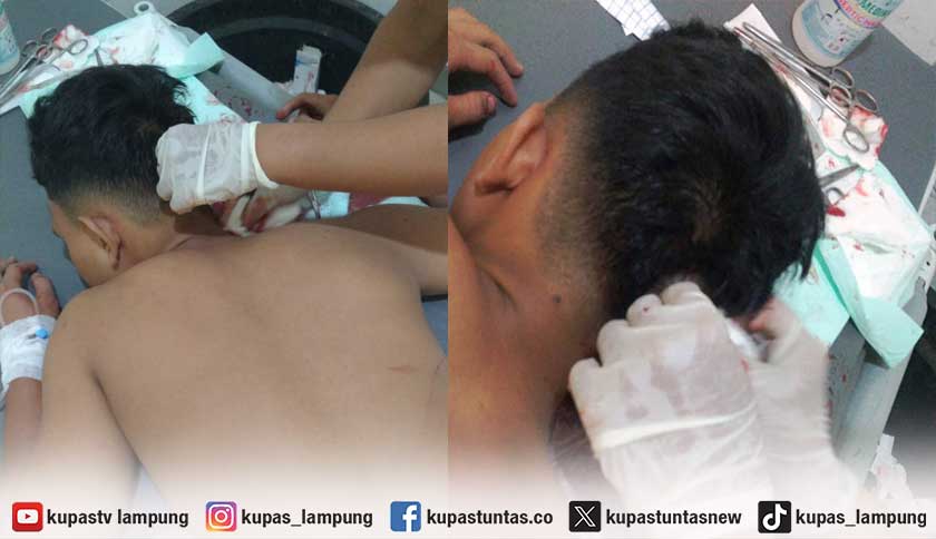 Korban FA (15), warga Perumnas Way Kandis saat mendapatkan pertolongan medis di rumah sakit usai diserang sekelompok geng motor. Foto: Ist