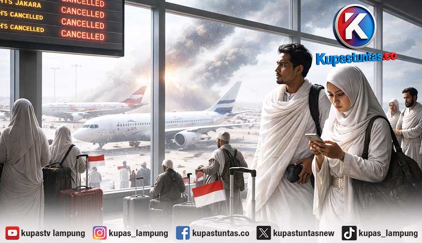 Kupastuntas.co, Bandar Lampung - Konflik militer yang melibatkan Amerika Serikat dan Israel terhadap Iran berdampak langsung pada perjalanan internasional warga sipil, termasuk jamaah umrah asal Indonesia.
