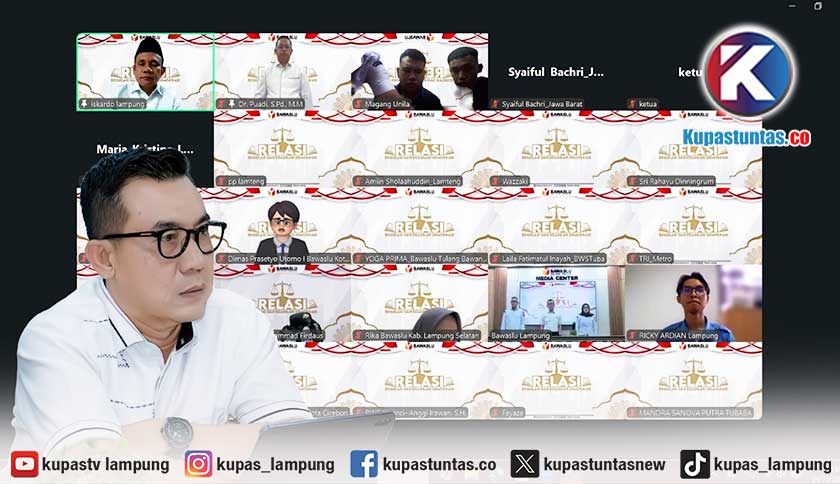Kupastuntas.co, Bandar Lampung - Bawaslu Provinsi Lampung menggelar webinar bertajuk RELASI (Regulasi & Keadilan Demokrasi) dengan tema 'Tantangan Penegakan Hukum Pelanggaran Penyalahgunaan Kewenangan pada Pemilihan Tahun 2024' yang diselenggarakan secara daring melalui Zoom Meeting, Rabu (4/3/2026).
