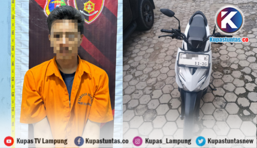 * Begal sepeda motor Honda Beat merah putih dan satu unit ponsel Vivo Y16 pada 13 Desember 2025 di Kampung Agung Dalem, Kecamatan Banjar Margo, Tulang Bawang.