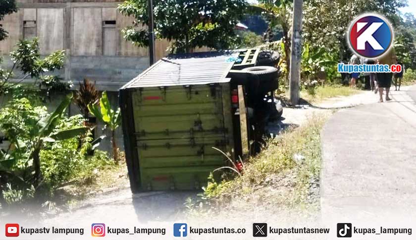 Kupastuntas.co, Lampung Barat - Sebuah insiden kecelakaan lalu lintas terjadi di ruas jalan Pekon Kerang, Kecamatan Batu Brak, Kabupaten Lampung Barat (Lambar), Senin (16/3/2026) sekitar pukul 10.25 WIB. Satu unit mobil boks dilaporkan terguling setelah diduga kehilangan kendali saat melintas di jalur tersebut.