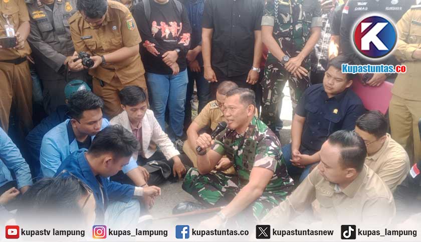 Panglima Komando Daerah Militer (Pangdam) II/Sriwijaya, Mayjen TNI Kristomei Sianturi, saat berdialog dengan Massa Aksi demontrasi. Foto: Sandika/Kupastuntas.co