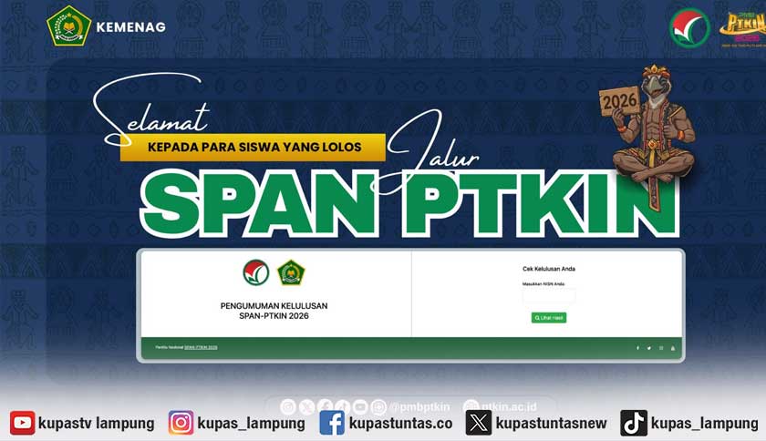 Kupastuntas.co, Jakarta - Panitia Nasional Penerimaan Mahasiswa Baru (PMB) Perguruan Tinggi Keagamaan Islam Negeri (PTKIN) resmi mengumumkan hasil seleksi jalur Seleksi Prestasi Akademik Nasional (SPAN-PTKIN) Tahun 2026. Pengumuman dapat diakses secara serentak mulai, Selasa, 7 April 2026, pukul 15.00 WIB melalui laman https://pengumuman-span.ptkin.ac.id/.