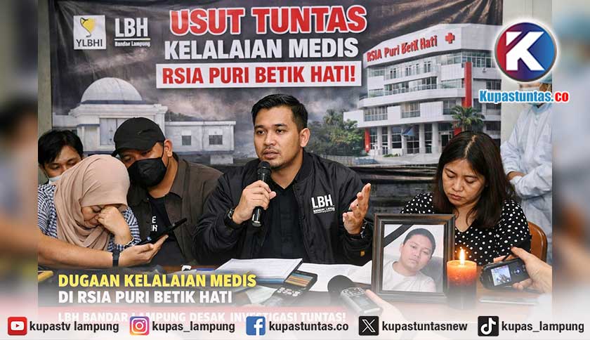 Kupastuntas.co, Bandar Lampung - Dugaan kelalaian medis kembali mencuat di Lampung. YLBHI-LBH Bandar Lampung mendampingi keluarga pasien berinisial AFA yang meninggal dunia usai menjalani perawatan di RSIA Puri Betik Hati.