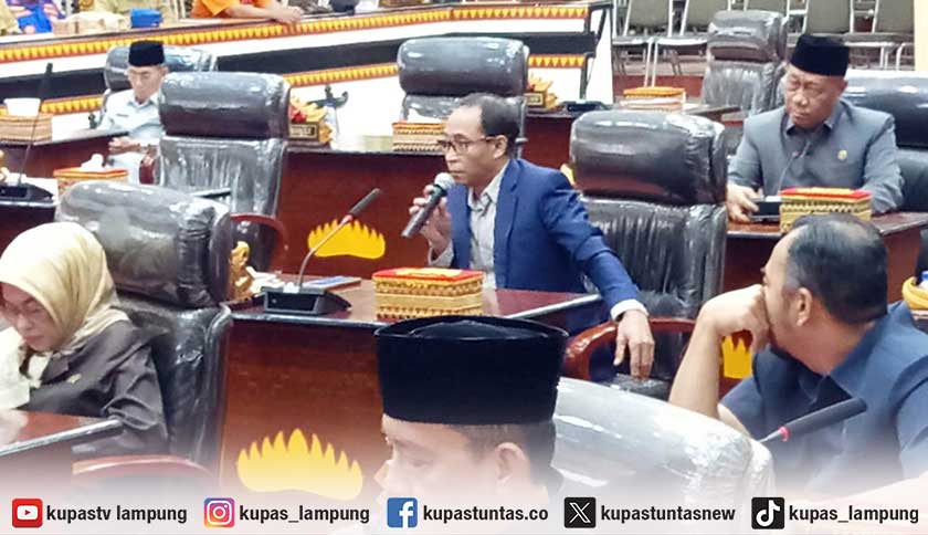 Anggota DPRD Kota Metro dari Partai Demokrat, Basuki Rahmat saat melayangkan Intrupsi dalam sidang paripurna. Foto: Arby/kupastuntas.co
