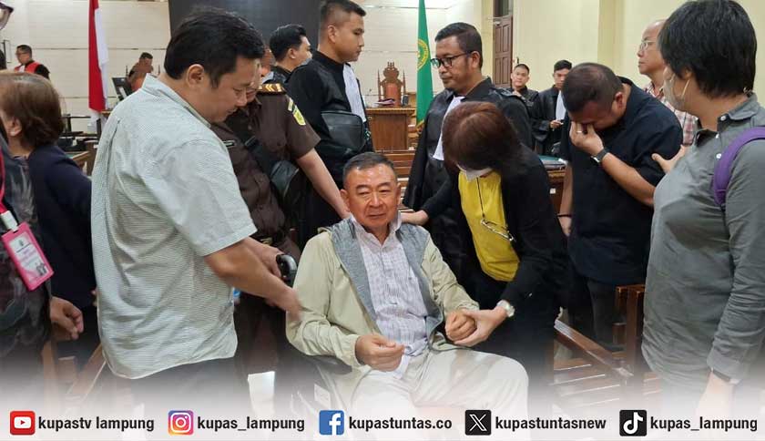 Thio Stephanus terdakwa korupsi tanah Kemenag di Lamsel tampak tegar usai mengikuti sidang vonis di PN Tanjung Karangl Foto: Yudi/Kupastuntas.co