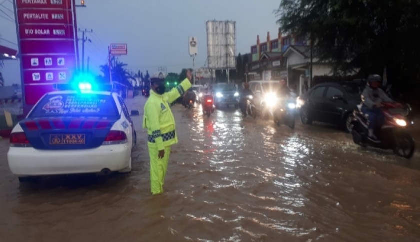 Hujan Deras, Ruas Jalinbar Pringsewu Tergenang Banjir