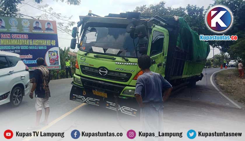 Kelebihan Muatan, Truk Bermuatan 21 Ton Pakan Ikan Terguling Di Jalinbar Pringsewu
