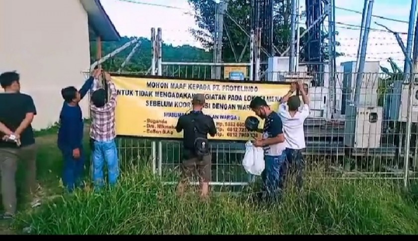Warga Kelurahan Pidada Segel Tower BTS PT. Protelindo