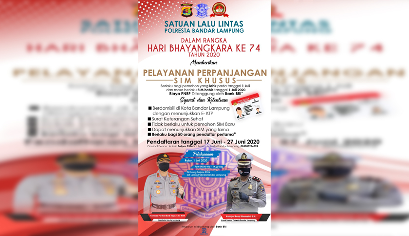 Satlantas Polresta Bandar Lampung Berikan Layanan SIM Gratis, Ini Syaratnya