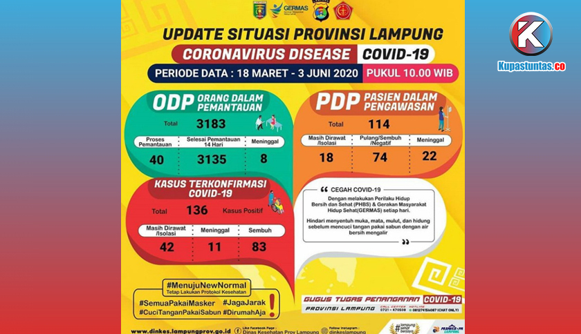 Update Covid-19 di Lampung: Pasien Sembuh Bertambah 3, PDP Jadi 114 Orang