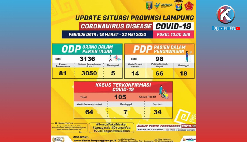 Update Covid-19 di Lampung, Pasien Positif Kembali Bertambah Jadi 105 Orang