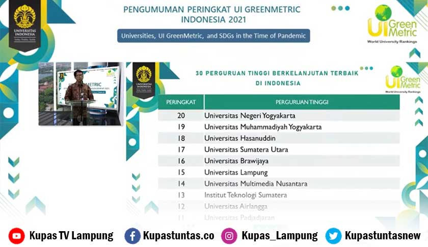 Unila Peringkat 15 UI GreenMetric Tingkat Nasional
