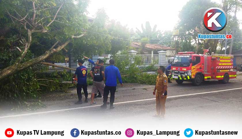 Diterjang Angin Kencang, Pohon Tua di Kalianda Tumbang Menimpa Pengendara Motor