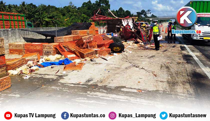 Truk Angkut Ayam Kecelakaan di Tol Kalianda, Satu Orang Meninggal di Tempat