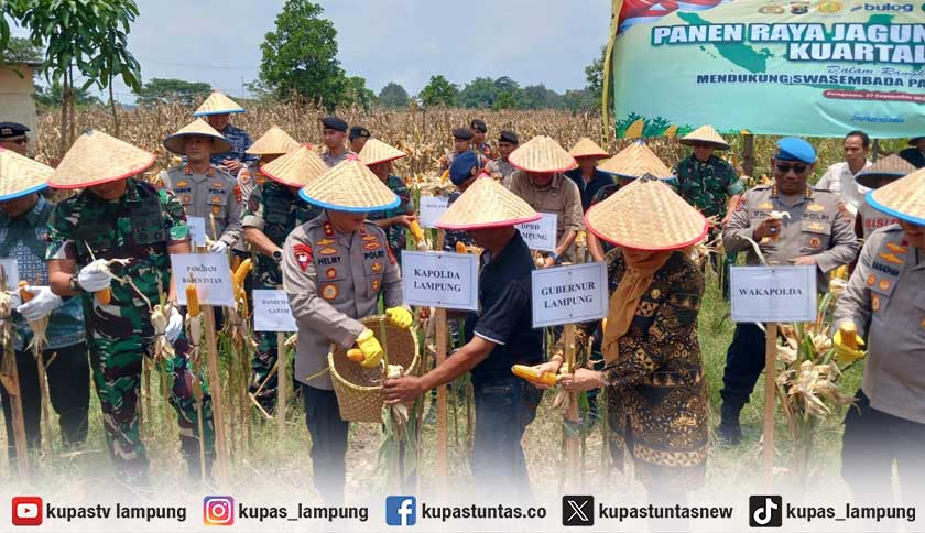 Dukung Swasembada Pangan, Kapolda dan Pangdam Gelar Panen Raya Jagung di Pringsewu