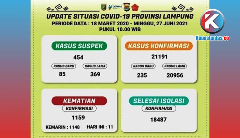 Tambah 235 Orang, Positif Covid-19 Lampung Tembus 21.191 Kasus