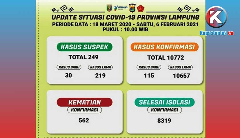 Update Covid-19 Lampung 6 Februari: Positif Tambah 115 Orang Jadi 10.772 Kasus