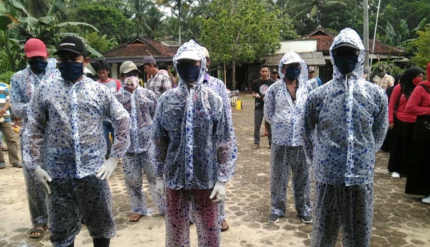 Seluruh Pamong Desa Way Areng Lakukan Penyemprotan Disinfektan